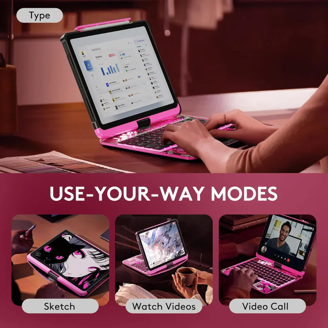 Enjoy ultimate flexibility with the 360° rotating stand and multi-angle viewing options. With 5 adjustable viewing angles, you can effortlessly switch between typing, sketching, and watching movies, making it ideal for work, creativity, and entertainment.