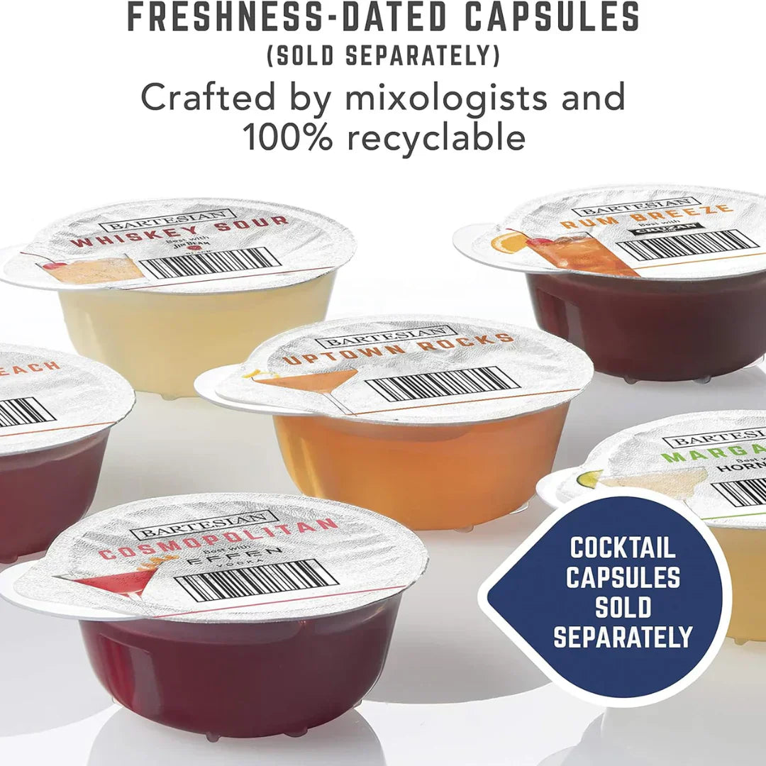 The machine also uses freshness-dated capsules containing real juice concentrates, bitters, and extracts to deliver premium-quality cocktails every time. Capsules and alcohol are sold separately, allowing you to customize your cocktail experience to your personal preferences.