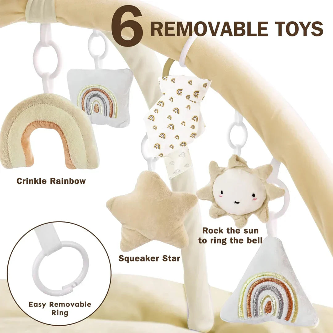 Featuring 6 detachable sensory toys (including a star, sun, and rainbow), this play gym is designed to spark your baby’s imagination and support cognitive and motor skill development. With vibrant colors, varied textures, and delightful sounds, it engages their sight, hearing, and touch.