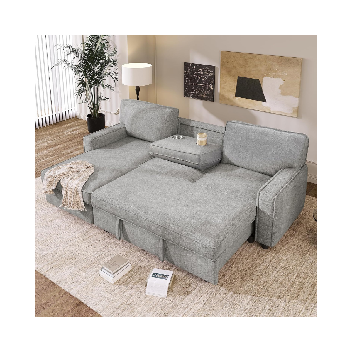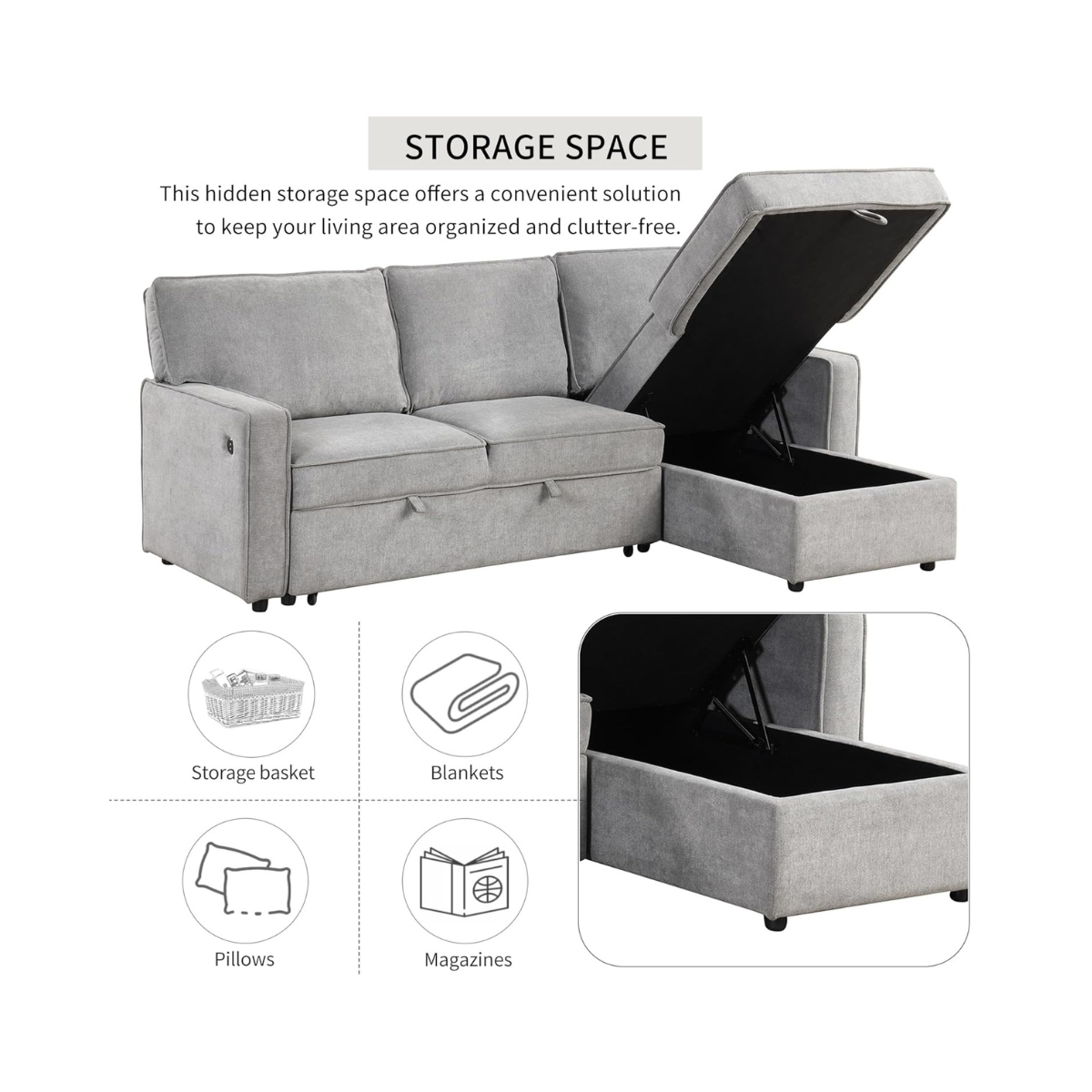 This modern sectional sofa easily converts into a comfortable sleeper bed using two simple pull straps—perfect for overnight guests. The reversible chaise includes hidden storage, ideal for stashing blankets, pillows, or magazines.
