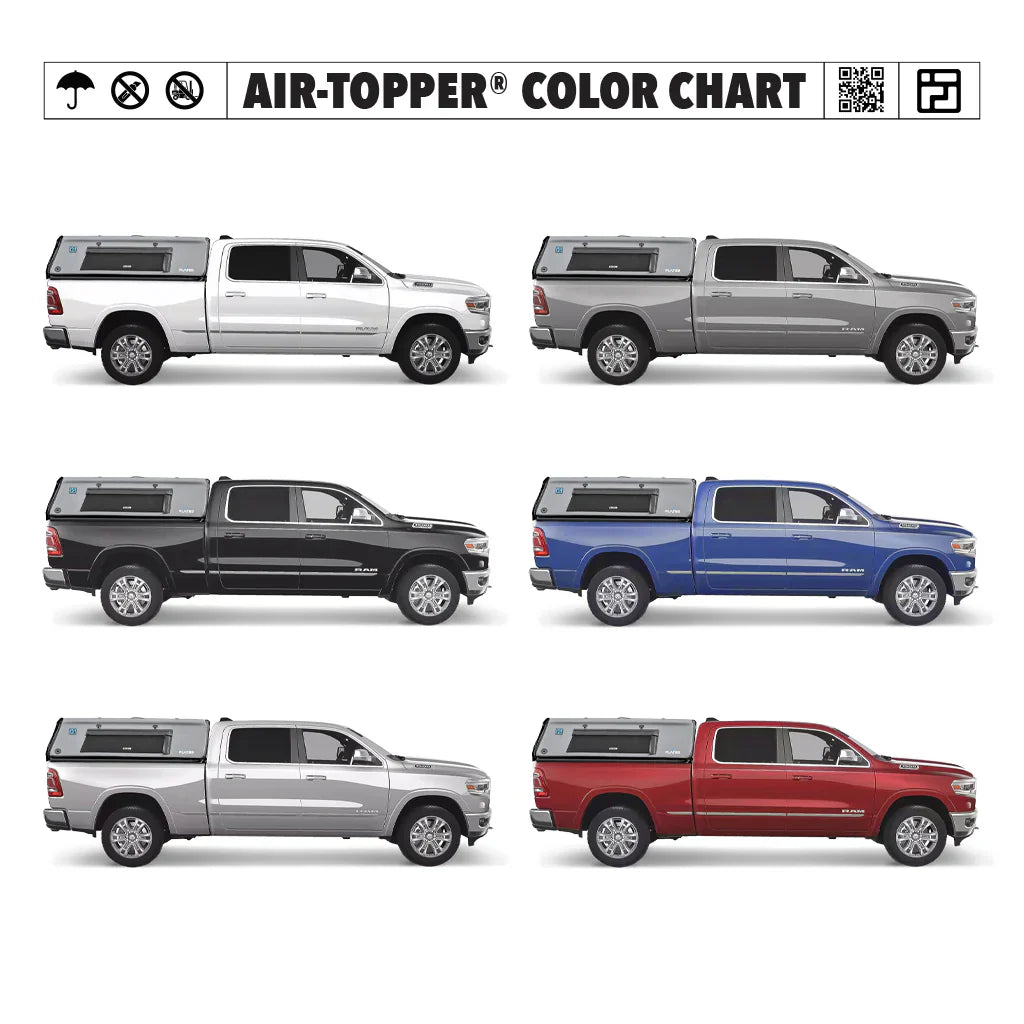 • The FLATED® Air-Topper® Full-Size Standard 6.4' Bed is an inflatable truck cap designed to fit full-size standard truck beds, including models like the Dodge Ram, Ford 150 (1994-2014 editions), and Toyota Tundra (second edition). Engineered with rugged drop-stitch technology, the Air-Topper® is lightweight yet sturdy, providing reliable protection for your gear, whether you’re on the job, camping, or hitting the road for adventure. Weighing less than 65 pounds, it inflates and installs quickly, saving time and effort while offering the versatility of a traditional truck cap without the bulk. When not in use, it deflates and stores compactly, making it easy to carry along or stow away. The Air-Topper® delivers the perfect blend of convenience, durability, and innovative design for truck owners ready for any journey.
