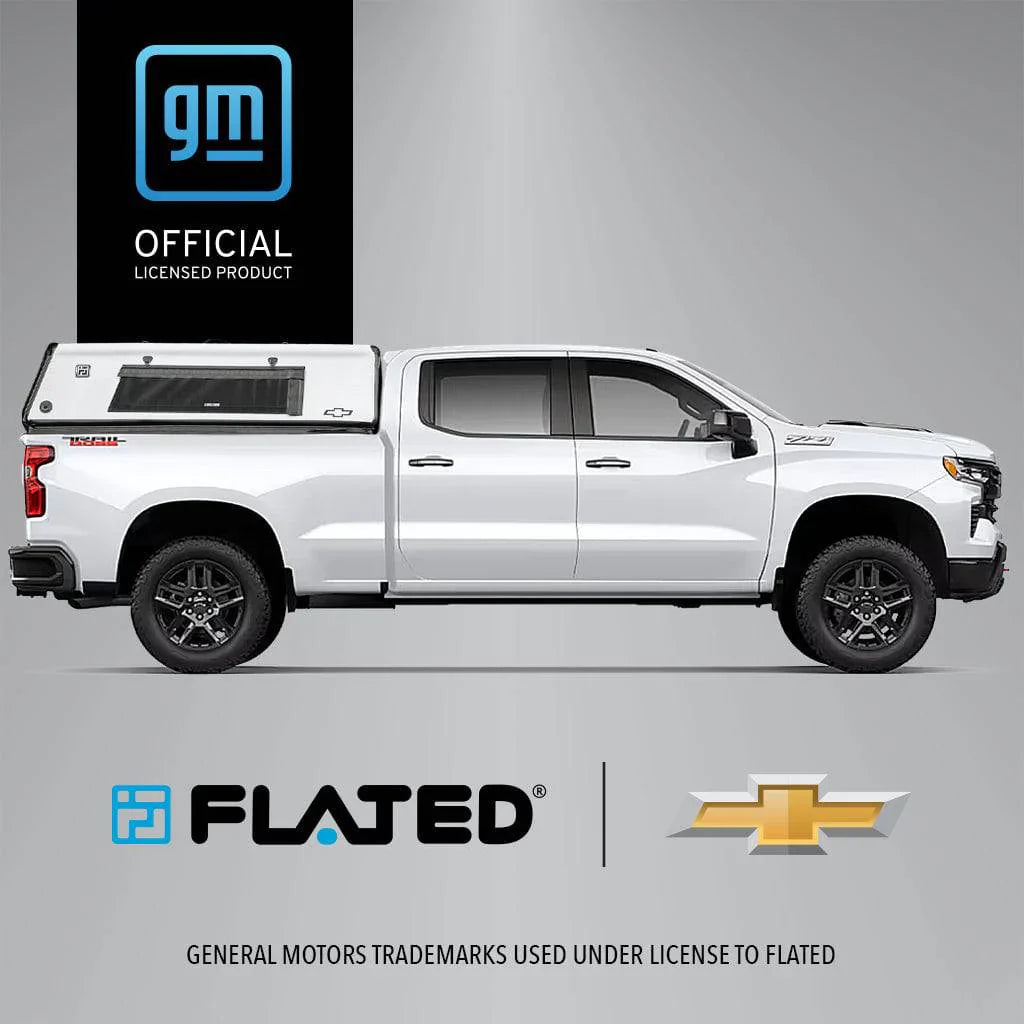 • Introducing the General Motors Officially Licensed FLATED® Air-Topper® CAP Full-Standard  Bed 6'6" Silverado - the CAP construction is a sleeker, cab high designed for the full-size standard beds, compatible with the Chevrolet Silverado. In collaboration with GM this Air-Topper® has a unique color, Chevrolet logos, and a model specific shape. Made with durable drop-stitch technology, this lightweight topper provides a secure, rigid fit, while weighing under 60 pounds for easy handling and storage. The Air-Topper® inflates in just minutes, offering fast, reliable coverage for hauling gear, sheltering equipment, or creating a camping setup on the go. When it’s time to pack up, simply deflate and store it compactly, ready for your next adventure. The Air-Topper® is a perfect solution for truck owners looking for flexible, space-saving, and high-performance versatility.