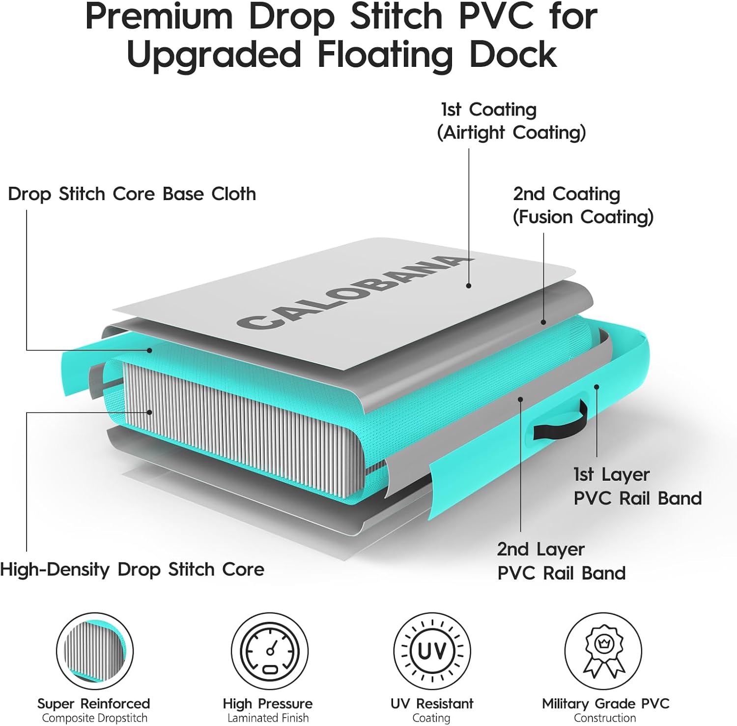 Designed for lasting performance, the inflatable dock is made from double-layered 1.2mm thickened PVC, offering exceptional airtightness and puncture resistance. Measuring 6ft x 10ft x 6", it comfortably supports 3 to 5 adults with a weight capacity of approximately 700 lbs, ensuring plenty of room for family fun or social gatherings.