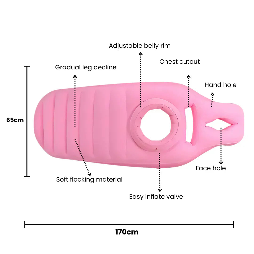 Enjoy the comfort and relaxation you deserve during pregnancy. This inflatable features an opening that allows you to lie face down, relieving pressure on your back and abdomen. Perfect for unwinding and taking care of yourself during this special time. With a free Pump! powered with QuickPump technology making inflating and deflating quick and easy.