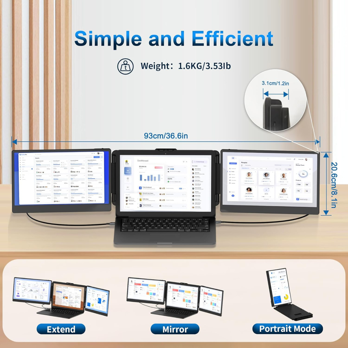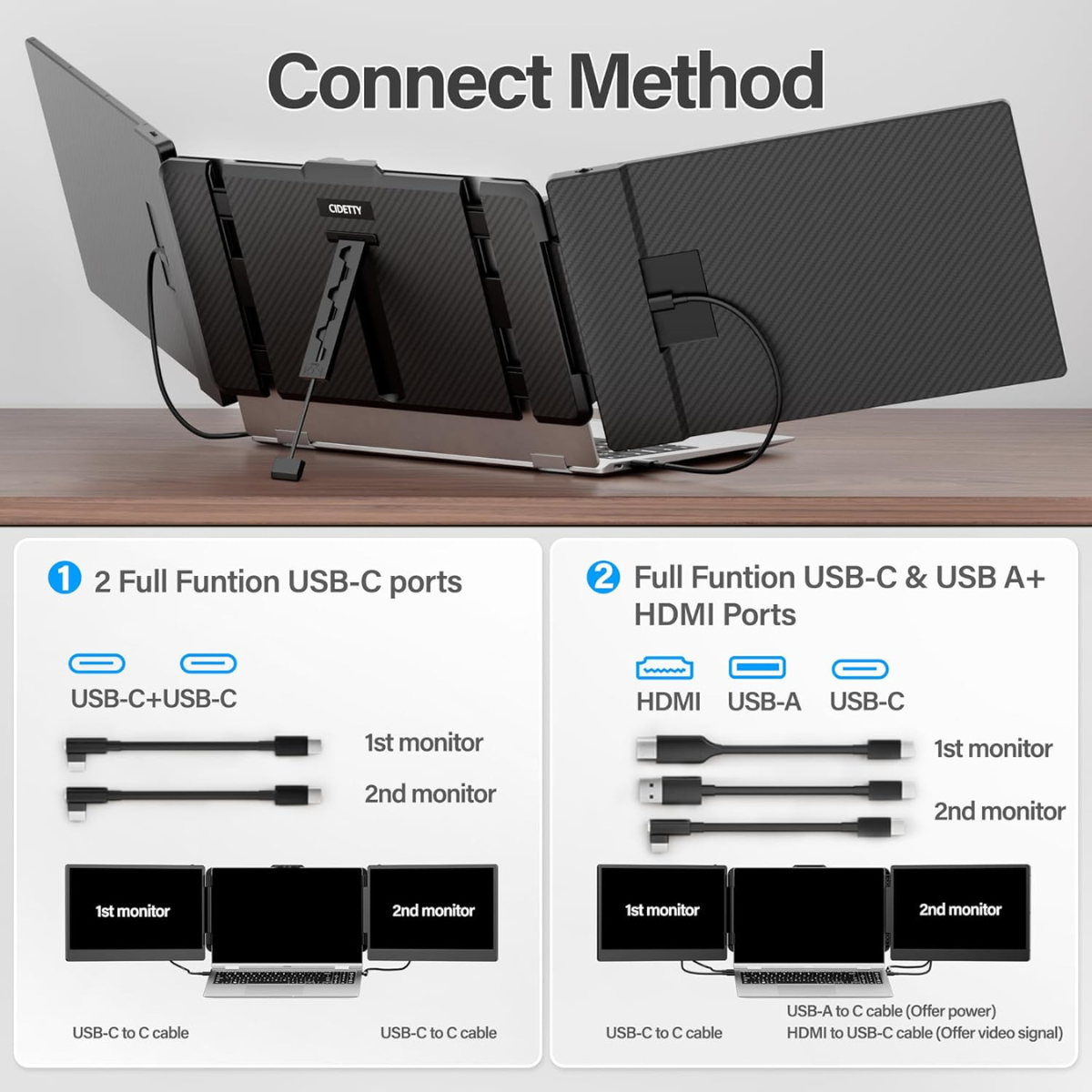Equipped with 2 USB-C ports and 1 HDMI-to-USB-C, it supports mirror and extended modes—ideal for multitasking and maximizing efficiency, anywhere.