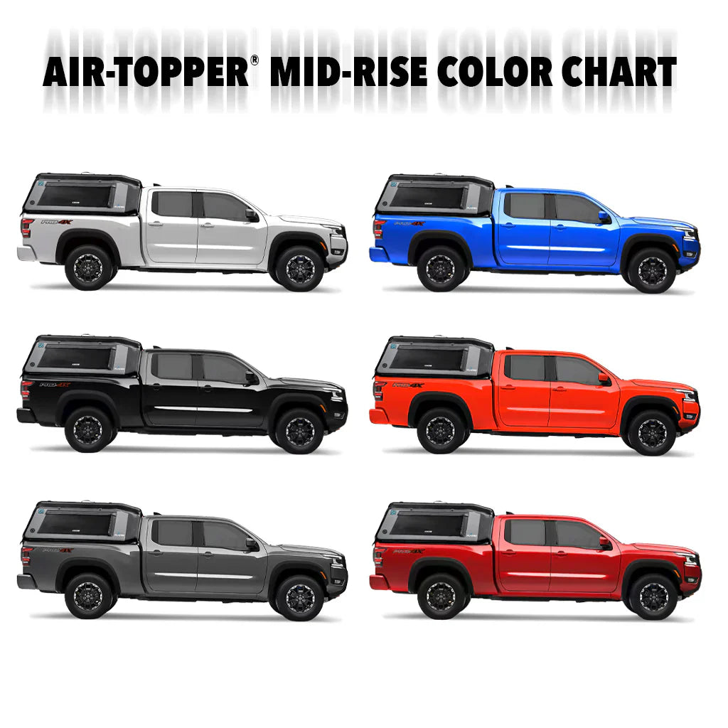The mid-size long bed Air-Topper® was designed to 6' bed Toyota Tacomas, Nissan Frontiers, GMC Canyons, Ford Rangers, and Chevy Colorados.