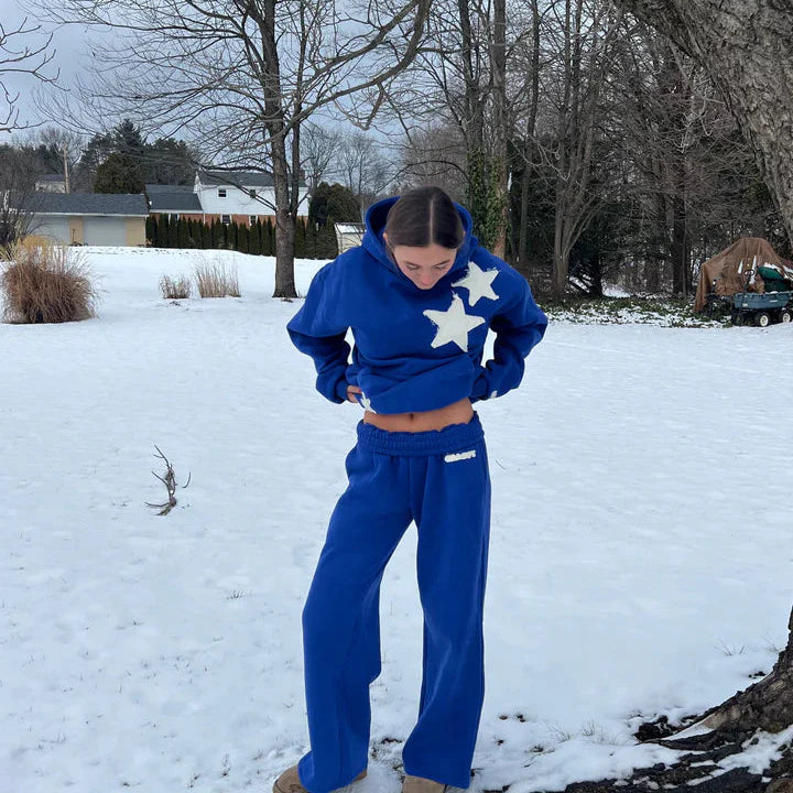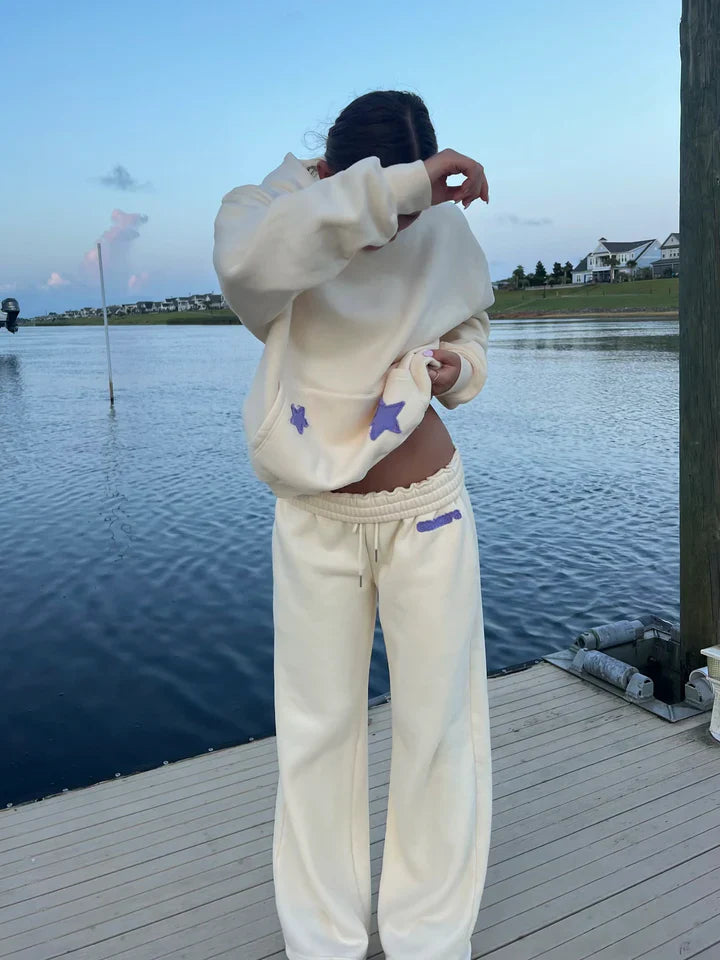 Cozy meets style. This cotton/polyester blend hoodie features standout appliqué details and is part of a matching set for the perfect laid-back look.