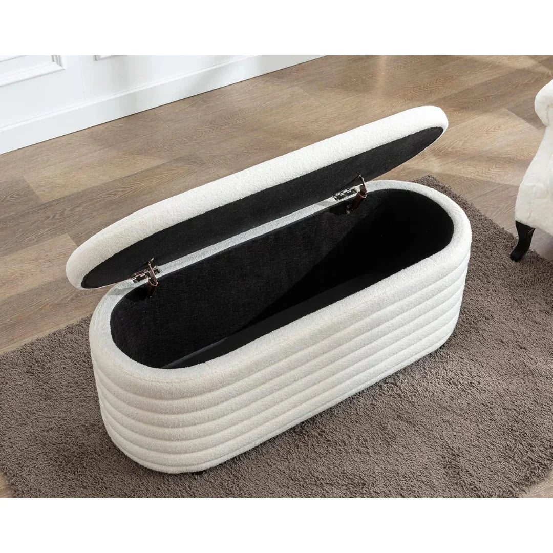 Featuring a spacious hidden compartment with a padded, hinged lid that stays open for easy access, this ottoman bench provides a perfect way to organize your home essentials. Its sleek design enhances any room, making it not only functional but also an elegant addition to your living room, bedroom, or entryway.