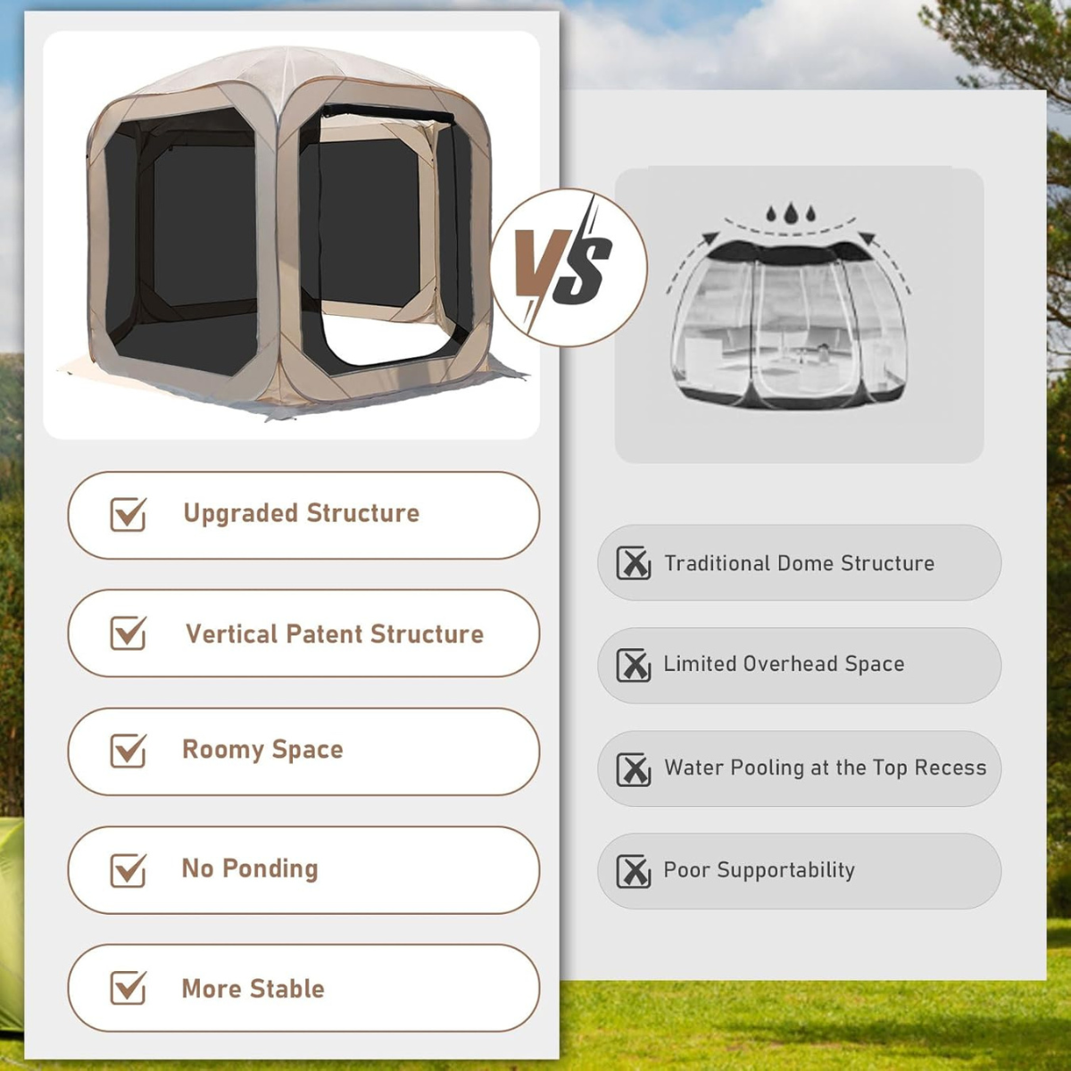 • Create the perfect outdoor escape with this easy-to-set-up pop-up screen tent, offering a spacious, shaded, and bug-free zone for all your adventures. Whether you're camping, hosting a backyard party, or enjoying a picnic, this tent combines protection, comfort, and portability in one smart design.