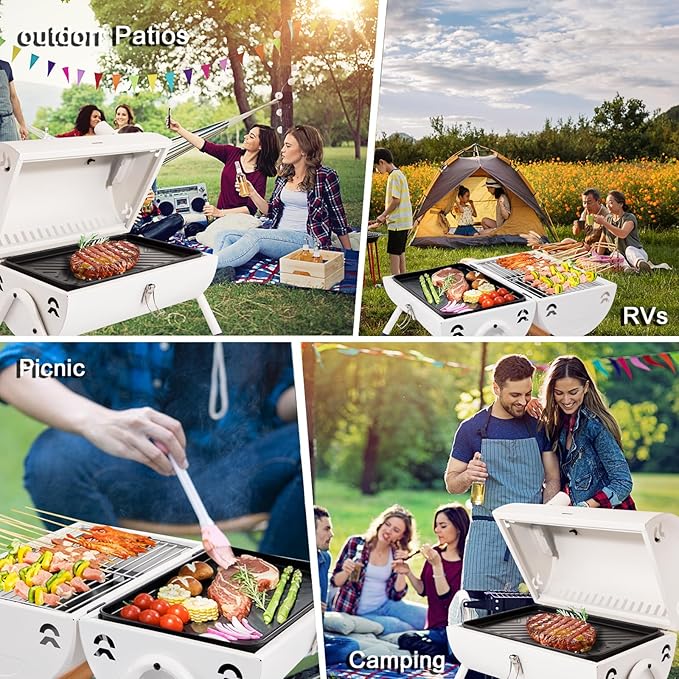 • Versatile cooking options: With this grill, you can cook a variety of foods, from juicy steaks to savory burgers and vegetables. You can experiment with different flavors and seasoning. Perfect for outdoor cooking anytime, anywhere.