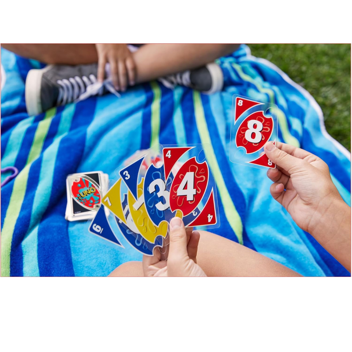 • Take the classic card game you love on all your adventures with UNO H2O To Go! Designed with durable, waterproof plastic cards, this rugged version is built for outdoor play—perfect for the beach, camping, poolside, or any on-the-go fun.